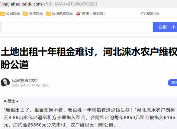 土地出租十年租金难讨,河北涞水农户维权盼公道